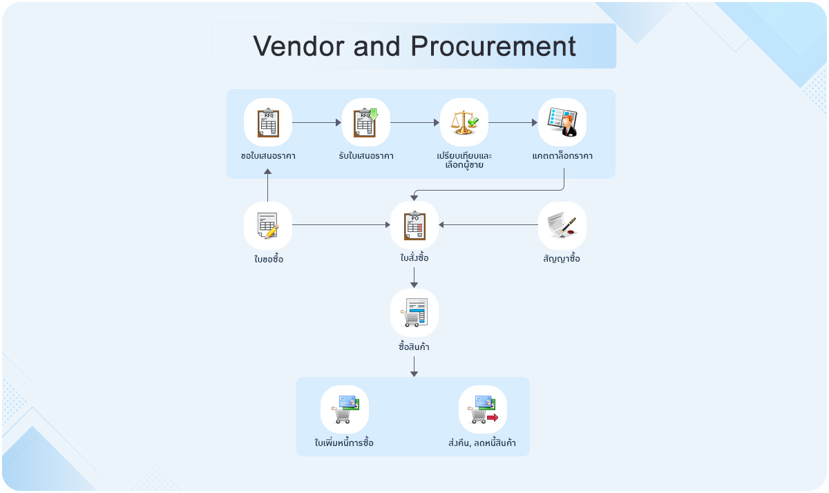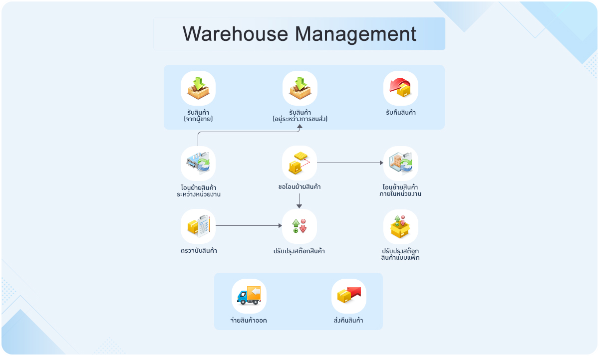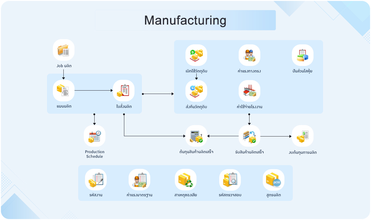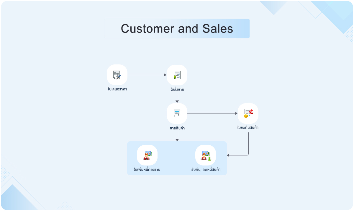 ครอบคลุมตั้งแต่ระบบบริหารงานขาย จัดซื้อ คลังสินค้า บัญชีลูกหนี้ บัญชีเจ้าหนี้ ทุกระบบเชื่อมโยงกัน ลดเวลาในการทำงานให้น้อยลง